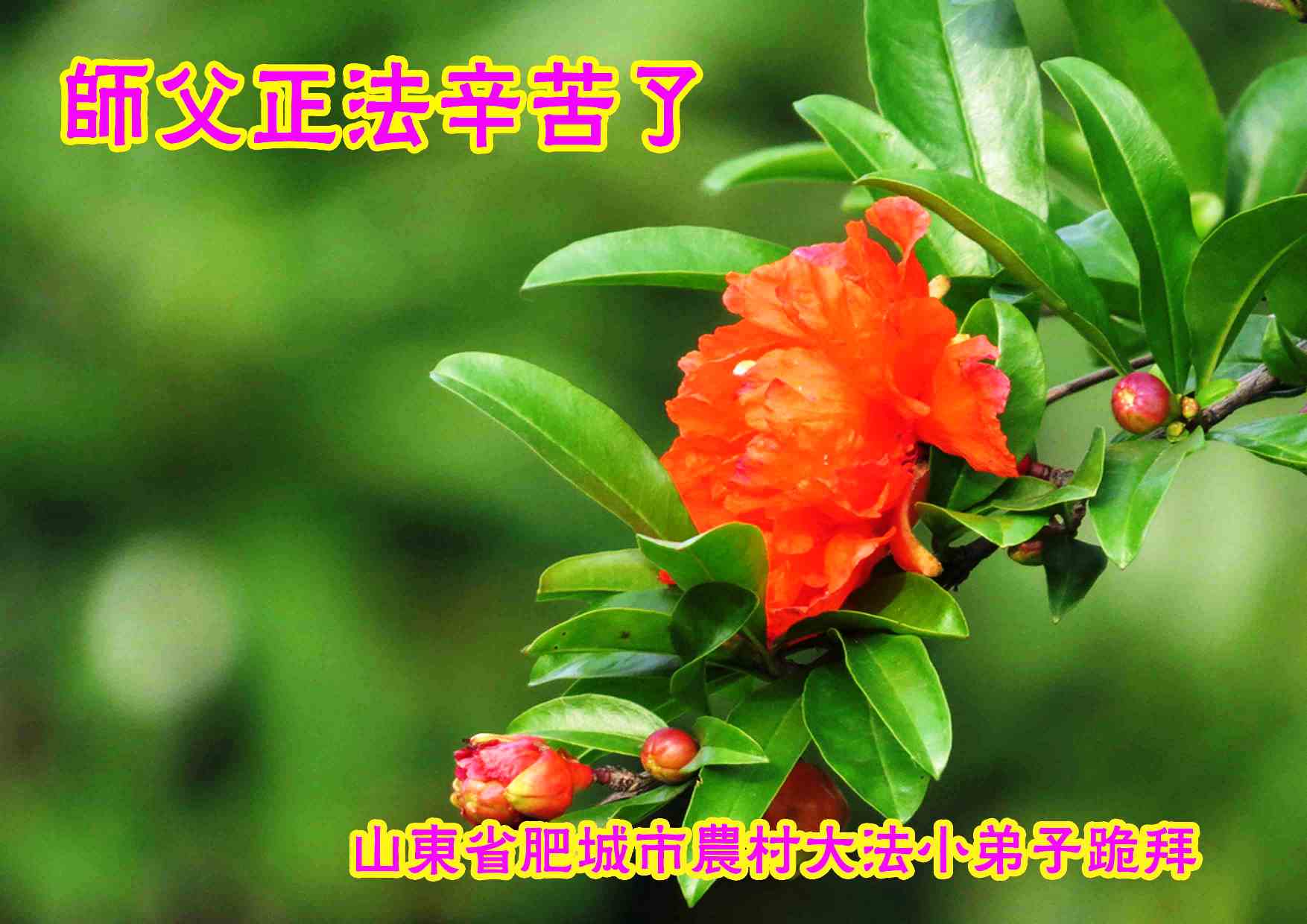师父您好!师父救度众生辛苦了! 请师父放心,弟子一定听师父的话,多学法,修好自己,充分利用师尊赐予弟子的佛法神通,彻底清除一切阻挡世人得救的邪恶,让世人清醒过来,找回真正的自我,摆脱邪灵的控制,给自己一个美好的未来! 山东省泰安市肥城市农村大法弟子恭祝师尊中秋快乐!