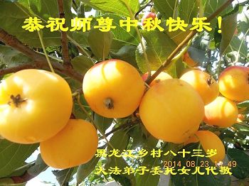 【明慧网二零一四年九月八日】 黑龙江乡村大法弟子恭祝慈悲伟大的师尊中秋快乐!
