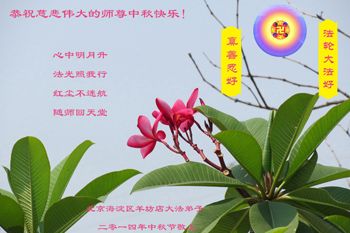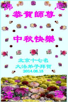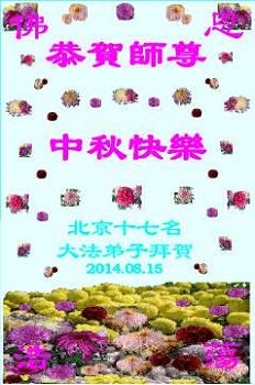 【明慧网二零一四年九月八日】 北京朝阳区老年大法弟子祝慈悲伟大的师父中秋快乐!