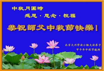 师父您好!师父您辛苦了!我们要做好三件事,完成好大法弟子的使命,不辜负伟大师尊的慈悲救度。 北京大兴区学法小组大法弟子恭祝师父中秋节快乐!