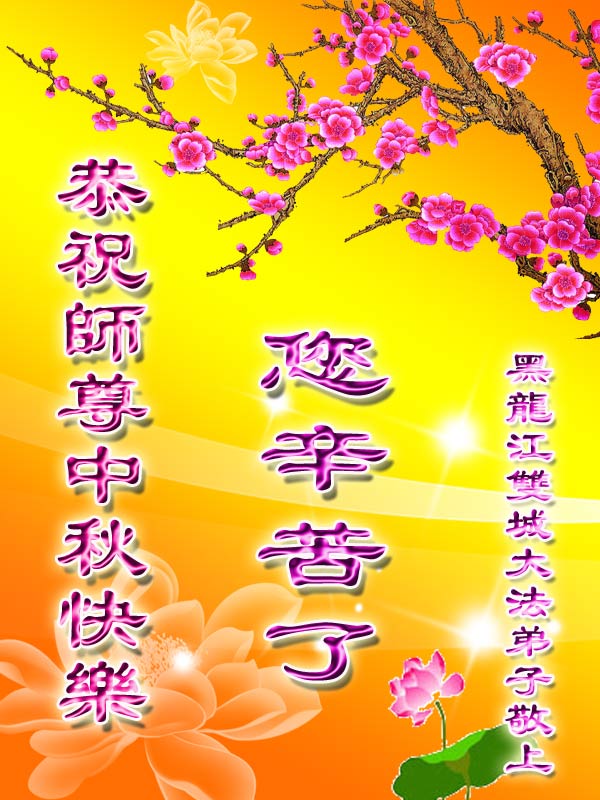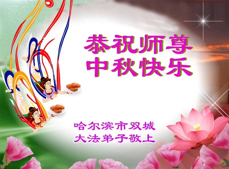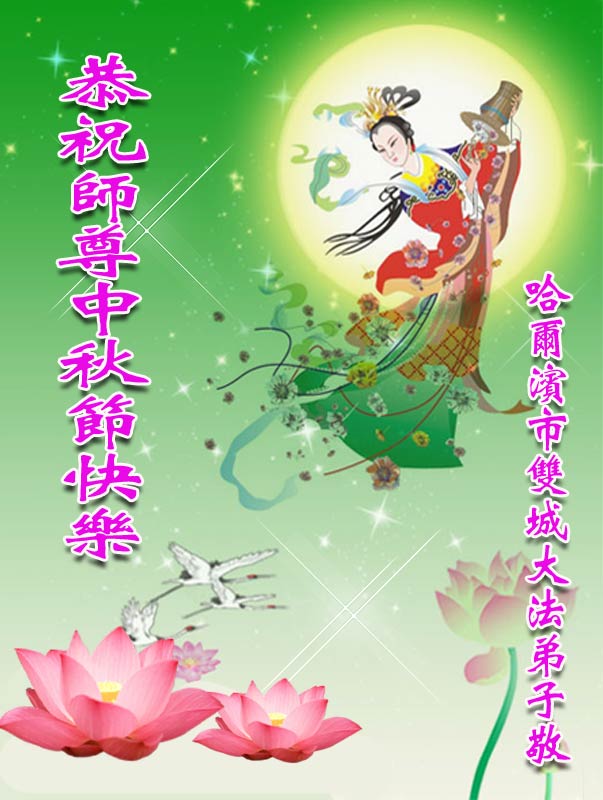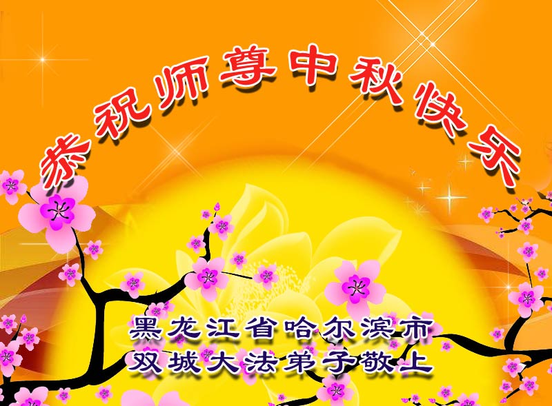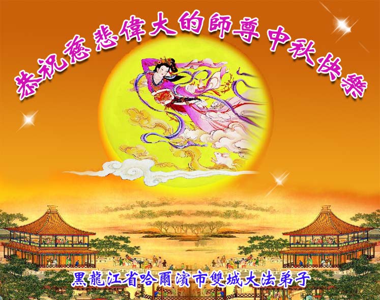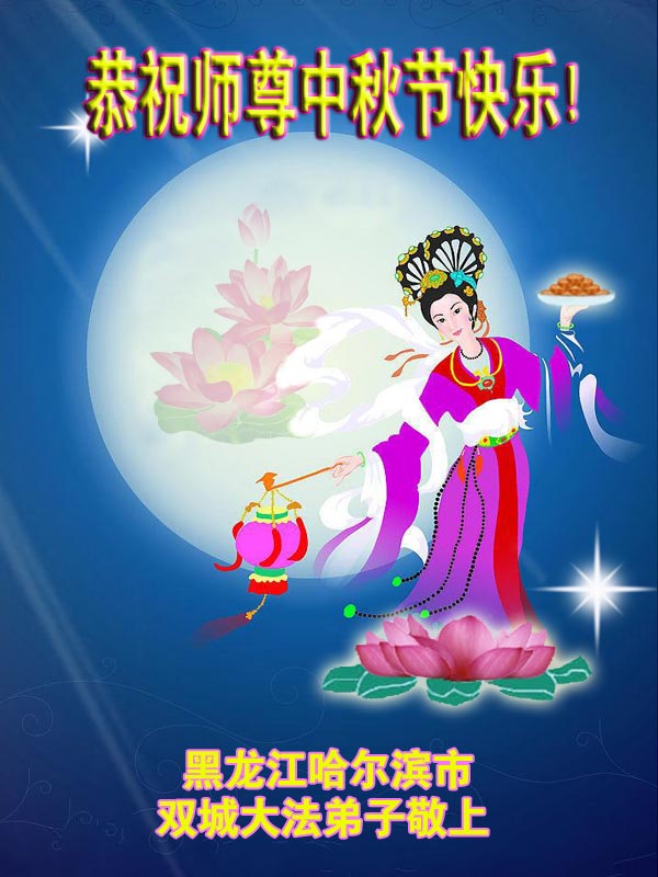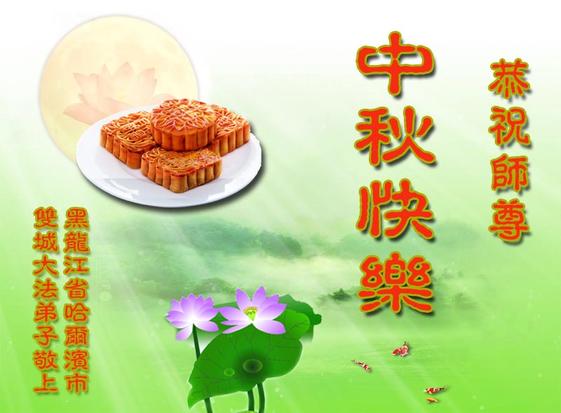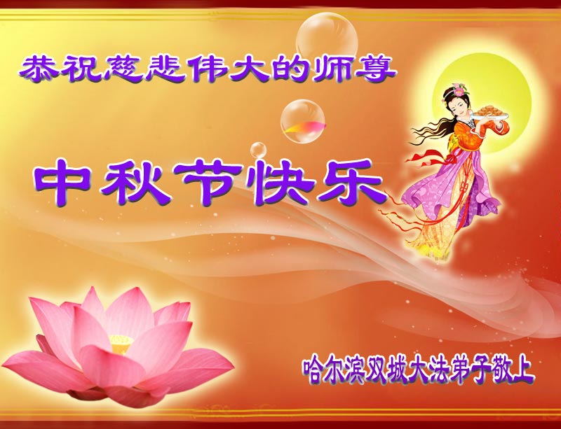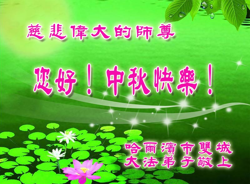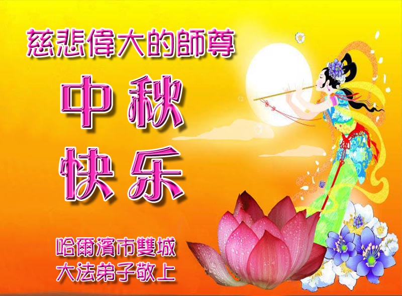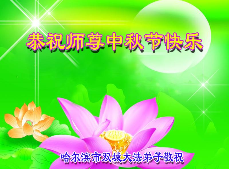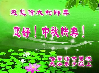 【明慧网二零一四年九月八日】 黑龙江省哈尔滨六名大法弟子恭祝慈悲伟大的师尊中秋节快乐!