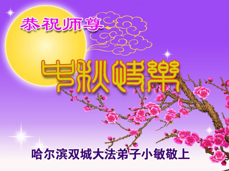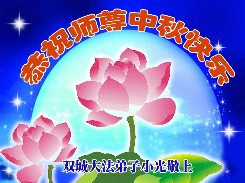 念师恩 想念师尊泪汪汪 一十八载修炼忙 满身顽疾命将死 师恩救度启帆航 学法修心炼金体 除恶救人铸辉煌 中秋佳节念师恩 叩拜师尊恩无疆 回报师尊唯精進 师尊快乐永安康 黑龙江省哈尔滨一大法弟子恭祝师尊中秋快乐!