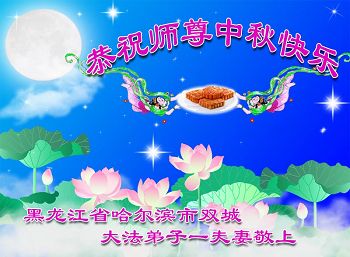 黑龙江省哈尔滨市双城大法弟子一夫妻恭祝师尊中秋快乐!