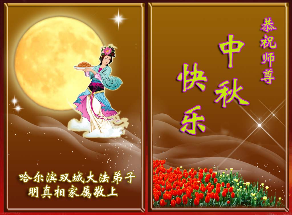 黑龙江省哈尔滨大法弟子全家恭祝慈悲伟大的师父中秋节快乐!