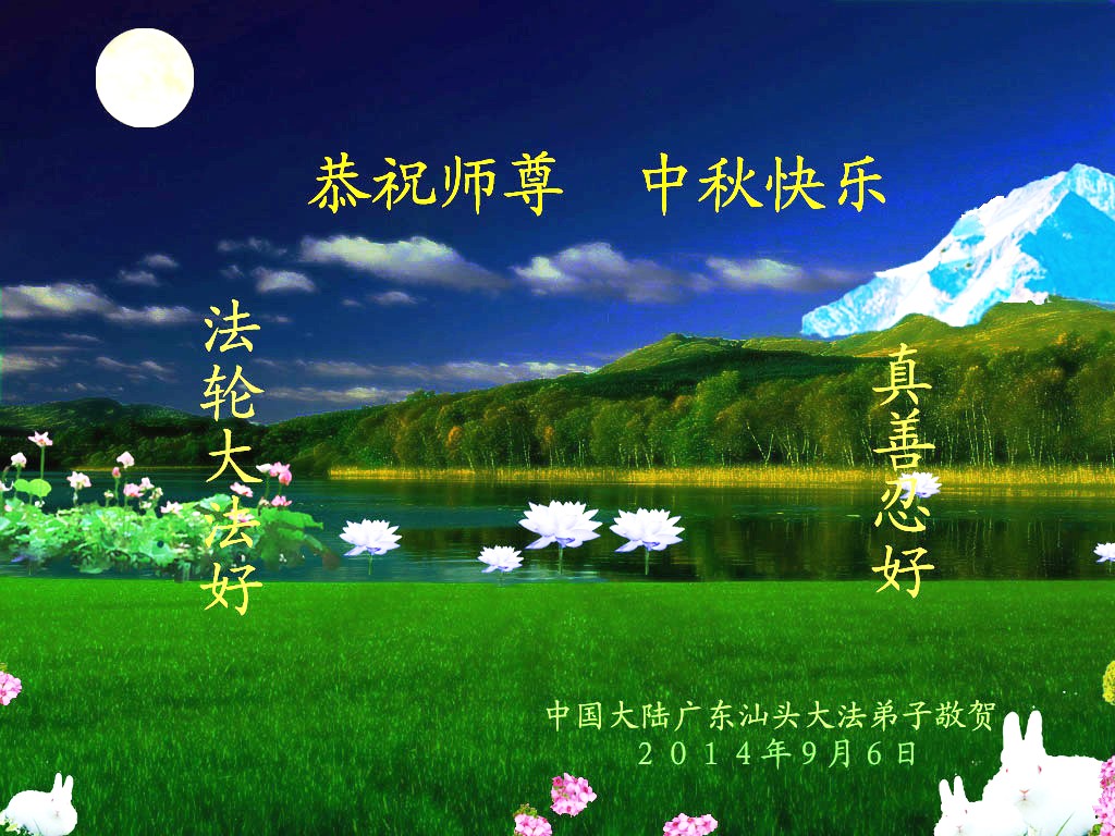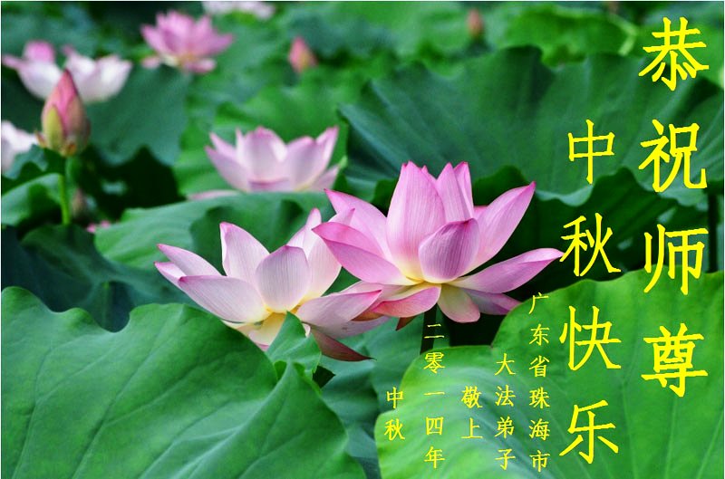【明慧网二零一四年九月八日】 广东潮州大法弟子敬祝师尊中秋快乐!