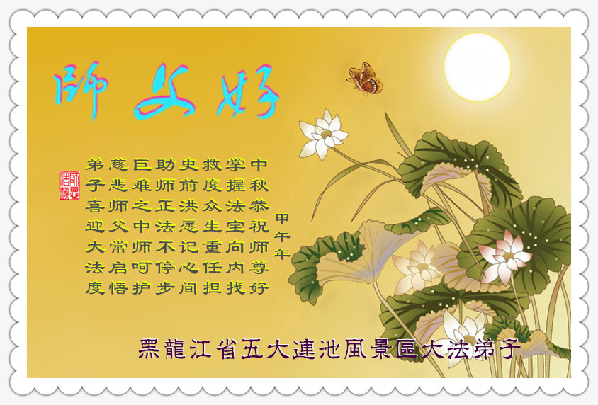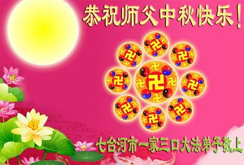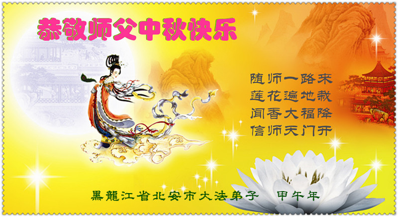 【明慧网二零一四年九月八日】 黑龙江省黑河市北安市、五大连池市、五大连池风景区大法弟子恭祝师父中秋节快乐!