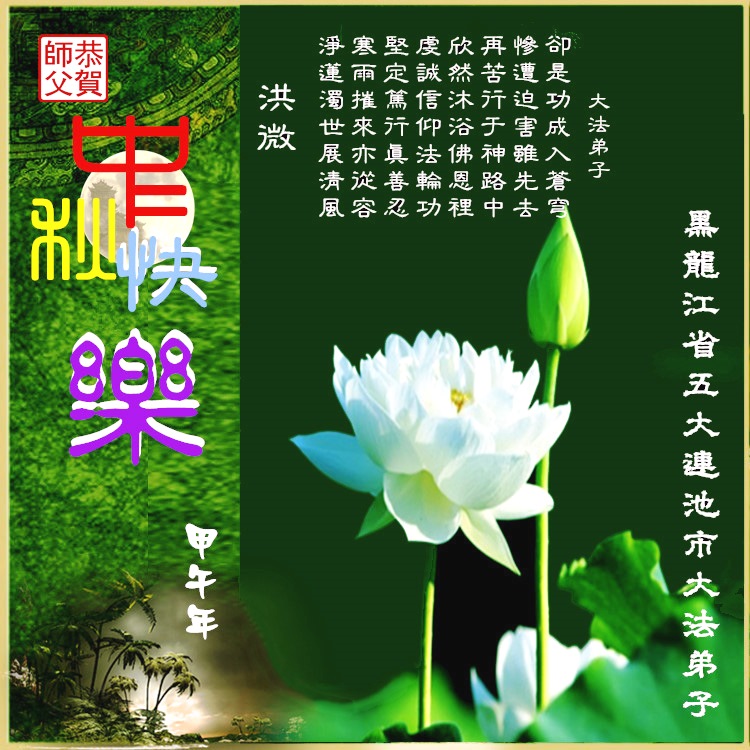 贺词 中秋感怀 我们从远古走来,相聚在这片土地。 多少次沧桑巨变,多少次轮回转生。 为的就是等到宇宙大法洪传的那一天。 一九九二年五月十三日,法轮大法开始在中原大地洪传,伟大慈悲的师尊转大法轮,发无量慈悲救度苦海众生。 一九九三年七月十五日,师尊把宇宙大法的福音送到美丽的鹤城齐齐哈尔,我们富裕人也有幸亲自聆听了师尊的讲法,成为师父的亲传弟子,并且不辱使命,不辞辛劳的把大法洪传。近到周边乡镇村屯,远达莫旗、五大连池。早期得法的富裕大法弟子谨遵师命,不敢懈怠,不敢欺骗。 因为曾经在师前立下誓约,要成为洪扬大法的主力军! 我们无比的幸福,沐浴着浩荡佛恩,走在返本归真的大道上。 曾几何时,我们冬炼三九,夏炼三伏;任凭风吹雨打,何惧严寒雪飘。 我们岿然不动,顶天立地,苦炼神功! 曾几何时,我们在一起学法,拜读宝书《转法轮》,切磋交流,比学比修,没有解不开的锁,没有闯不过的关! 那种精進的意志,金刚不动,震撼天宇! 一九九九年七月,黑云压顶,群魔出动,中原大地血雨腥风。 我们富裕大法弟子也勇敢的站出来维护大法,進京护法,为师父鸣冤,为大法讨回公道! 师父讲过,佛陀,就是宇宙的保卫者! 我们为正义真理而战,天安门广场也留下了富裕大法弟子证实法的脚印和身影。 但是,我们也有做不好的地方,迫害逐渐加剧,有的弟子害怕了,掉队了,还有摔跟头的,跌倒了爬不起来的,甚至有走向反面的…… 但慈悲的师父并没有放弃我们。 当我们迷茫的时候,师父一次次点悟我们; 当我们摔跟头时,师父一次次用重锤敲醒我们; 当我们有了点小小的進步时,师父就鼓励我们,夸我们“伟大”、“了不起”…… 可是我们有时真的不争气啊,愧对师恩。 在迫害严厉时期,有的弟子非常坚定,反迫害,救众生,义无反顾。 现在,环境宽松了,竟然懈怠了,放松了精進的意志,安逸心、懒惰心、色欲心、自私心、显示心、欢喜心、妒嫉心、依赖心、崇拜心、学人不学法的心、求名求利的心等各种人心滋生,整体配合有漏,被旧势力钻空子迫害。 回忆这些年身边被旧势力以各种借口拖走肉身的昔日同修,除了其自身的修为不够标准外,能说与我们周围大法弟子、与我们的整体没有关系吗? 是我们没有把同修的事当成自己的事,漠视难中的同修,向外看,不向内找,没有形成坚不可摧的整体,才被邪恶钻了空子。给我们地区的个人修炼和整体造成了很大损失,也留下遗憾。 由于我们的不争气、不精進,跟不上正法進程,师父一次次为弟子们承受着来自各层空间的魔难。 如今,我们的师父已经是“为救大穹传天法 众生业债一身当 无量众业成巨难 青丝斑白人体伤”。(《洪吟三》〈还原〉) 师父啊,都是弟子的错,让师父遭受这样大的巨难。 正法已经走过十五个年头,我们富裕大法弟子在师父慈悲加持呵护下,逐渐用大法归正自己,逐渐走向理性和成熟。 师父赐给了我们“向内找”的法宝,让我们遇到矛盾时各自查找不足,告诉我们: “修炼人 自找过 各种人心去的多 大关小关别想落 对的是他 错的是我 争什么”(《洪吟三》〈谁是谁非〉) 在师父的慈悲加持、呵护下,现在我们在证实法的路上越走越正,越走越稳。 再有几天就是中华的传统节日—中秋节了,我们富裕大法弟子在遥远的大陆隔洋遥祝师尊,九叩首,共同问候一声: 师父,您好!中秋快乐! 师父,您辛苦了! 弟子们想念您啊! 过去的一切不会从新再来,做对的地方我们不会骄傲,做不好的地方,我们会在今后的学法实修当中归正。有师在,有法在,弟子什么也不怕。因为师父告诉我们“弟子正念足 师有回天力”(《洪吟二》<师徒恩>) 再次合十叩拜,感谢师尊对富裕大法弟子的慈悲救度。弟子唯有精進,修炼如初报师恩。 富裕县全体大法弟子合十叩拜恭祝 2014年8月30日