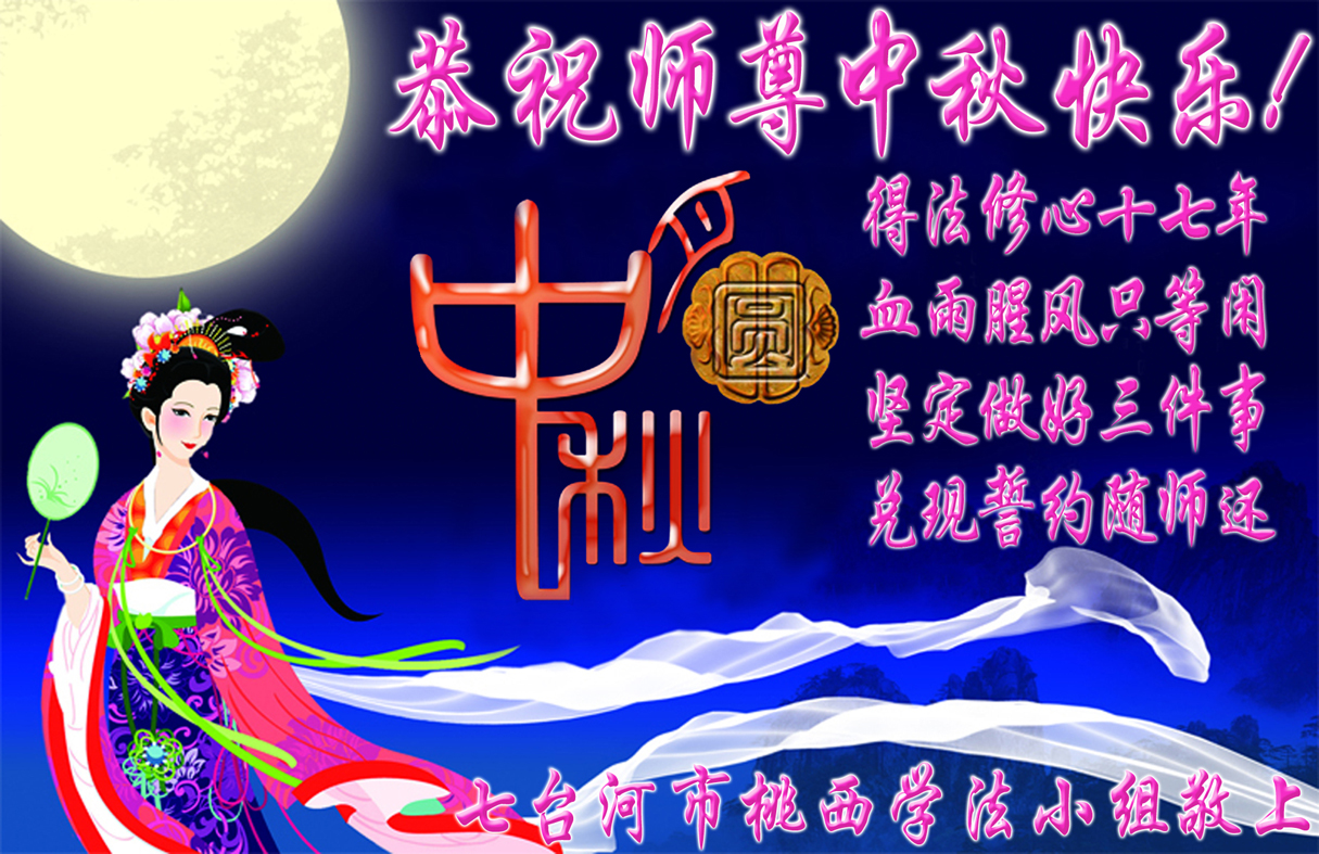 感谢师尊慈悲救度,弟子一定做好三件事,多救人,请师父放心。黑龙江依兰达连河大法弟子一家敬上 2014年8月31日 黑龙江省七台河市勃利县城北集体学法组大法弟子恭祝师尊中秋快乐!