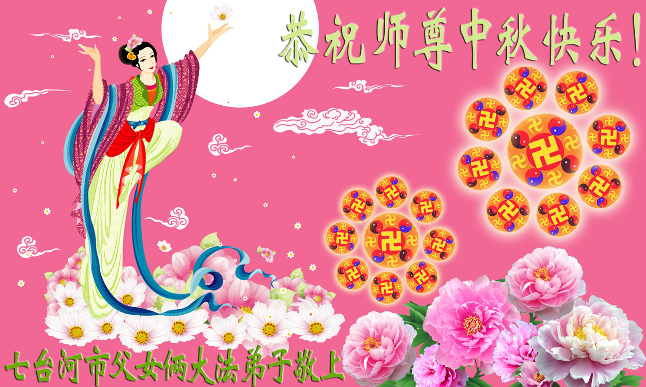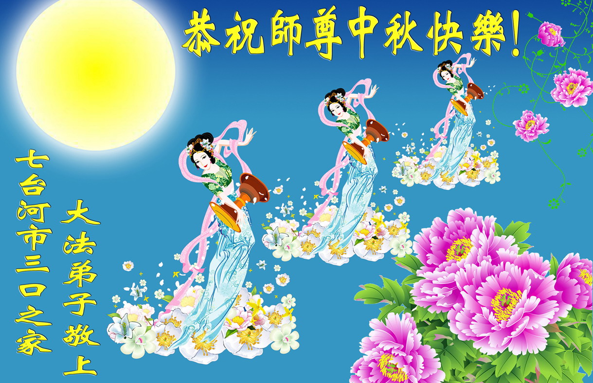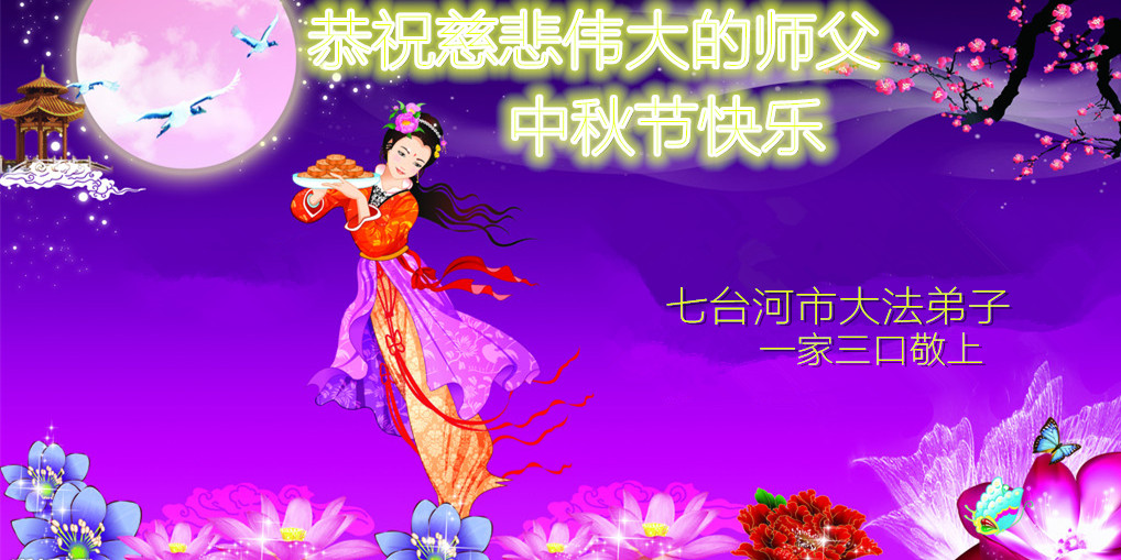 黑龙江省七台河市父女俩大法弟子敬上 黑龙江省七台河一家三口大法弟子恭祝慈悲伟大的师尊中秋快乐!