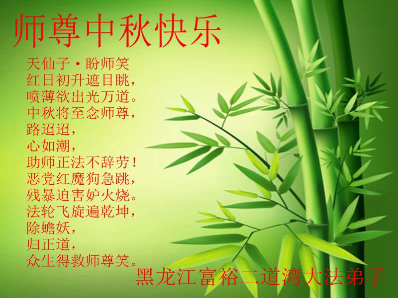 黑龙江省富裕二道湾大法弟子恭祝师尊中秋节快乐!