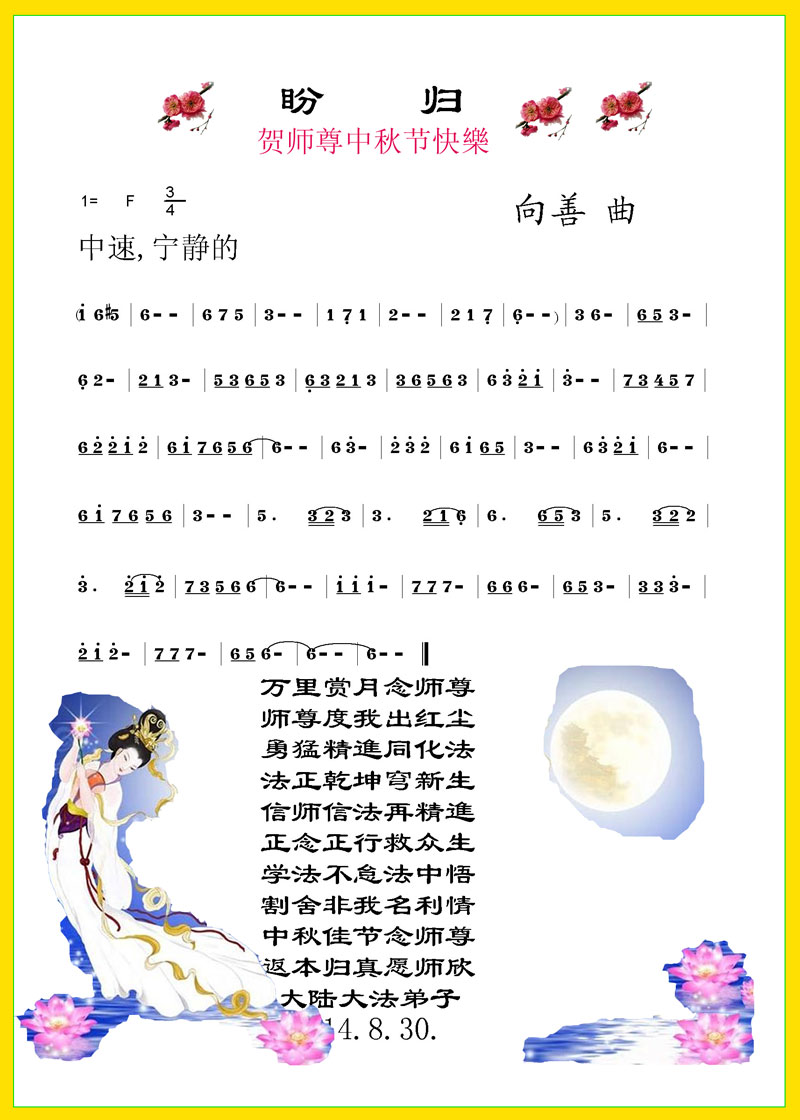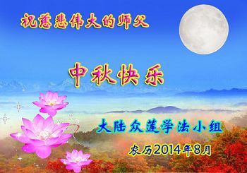 【明慧网二零一四年九月八日】 中国大陆大法弟子恭祝师尊中秋快乐!