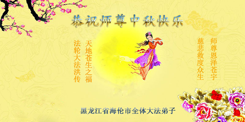 一年一度的中秋节又到了,回顾一年来所走过的正法路,虽说弟子都在努力救人,但深感有很多事情还没有做好,浪费了正法时间,很对不起众生,对不起慈悲伟大的师尊。在此请师尊放心,余下的时间里我们会更加努力,跟上正法進程,认真做好三件事,多救人,多学法。改变从自己开始,把自己当成一颗法粒子,像个真正的大法弟子一样去完成自己的使命,兑现自己的史前誓约,圆满随师还。感谢师尊的慈悲呵护!全体大法弟子叩谢师恩! 黑龙江省绥化市海伦市全体大法弟子恭祝师尊中秋节快乐!弟子们想念您!