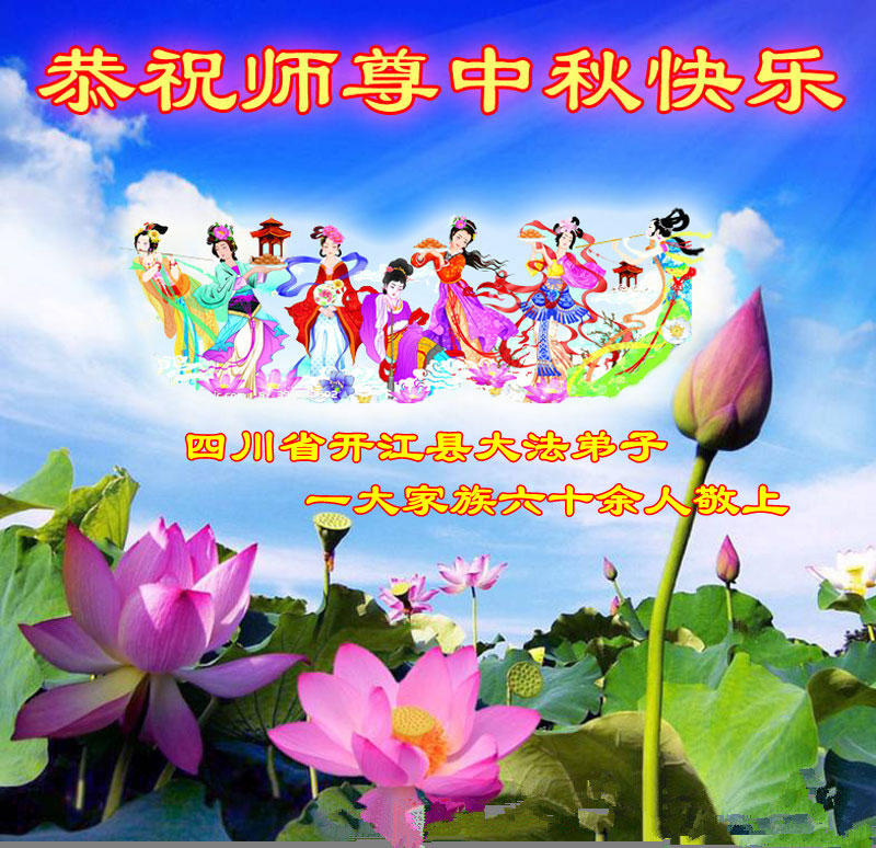 四川德阳地区(什邡、广汉、绵竹、中江、罗江)全体大法弟子恭祝慈悲伟大的师尊中秋节快乐!