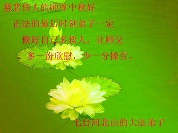 正法的最后时刻弟子一定修好自己多救人,让师父多一份欣慰,少一份操劳。 黑龙江省七台河七星花园全体大法弟子问候师父中秋快乐!