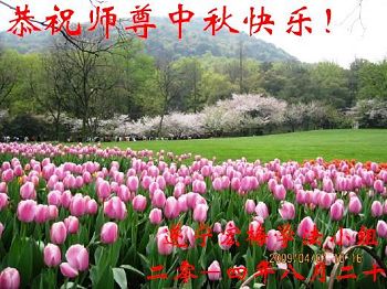 师尊您好!师尊辛苦了!弟子想念您!请师尊放心,我们一定不辜负您的期望,多学法、学好法,扎实做好三件事,讲清真相、救度众生、清除邪恶,兑现史前誓约,让师尊多一份欣慰,少一份操劳,圆满随师还。 黑龙江七台河一家大法弟子恭祝师尊中秋快乐!