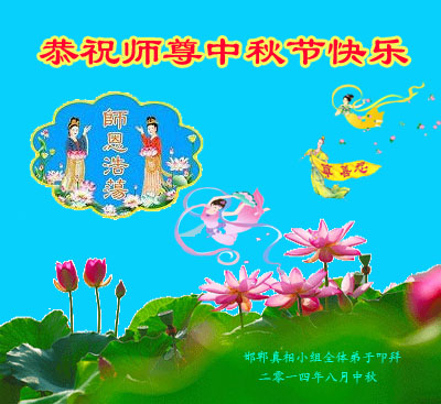 【明慧网二零一四年九月八日】 江苏镇江全体大法弟子恭祝师尊中秋节快乐!感谢师尊慈悲度与保护!