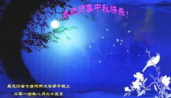 谢谢师父的慈悲苦度,我代表全家问候一声师父您辛苦了! 四川省遂宁佳慧学法小组大法弟子恭祝师尊中秋快乐!