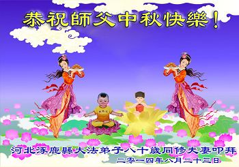 河北逐鹿县大法弟子八十岁夫妻恭祝师父中秋快乐!