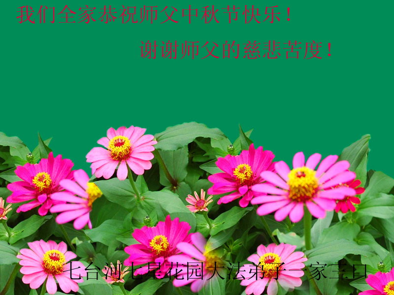 黑龙江省七台河七星花园大法弟子一家三口恭祝师父中秋节快乐!谢谢师父的慈悲苦度!