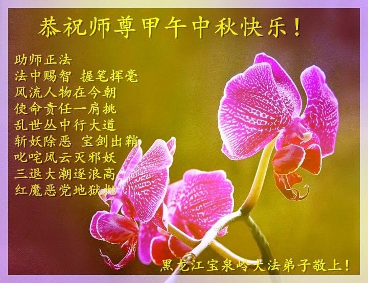 黑龙江宝泉岭新大法学员恭祝师尊中秋快乐!