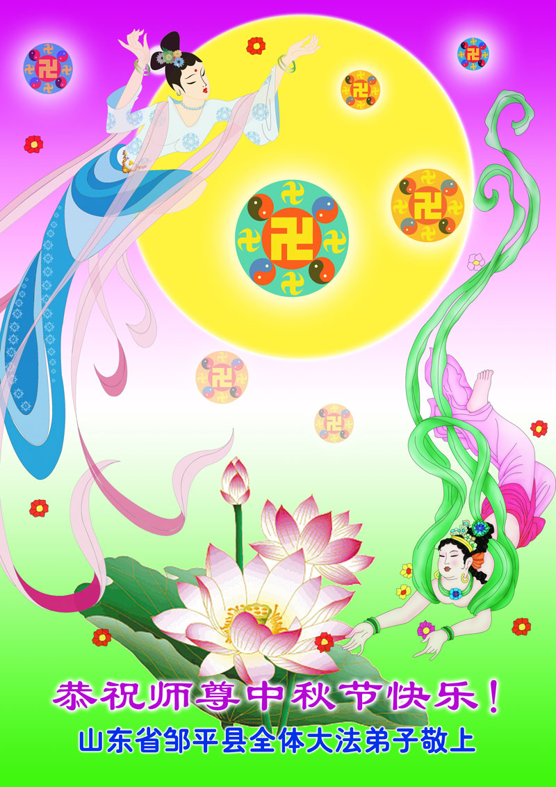 山东烟台开发区大法弟子及家人恭祝师尊中秋快乐!