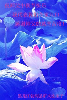 黑龙江省七台河市勃利县矿大法弟子代表全家八口人感谢师父的慈悲苦度!祝师父中秋节快乐!