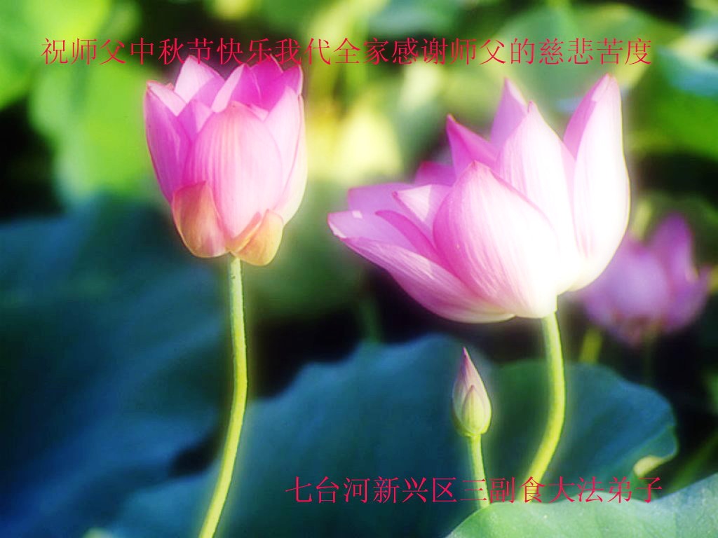 黑龙江省七台河市新兴区三副食大法弟子代表全家感谢师父的慈悲苦度!祝师父中秋节快乐!