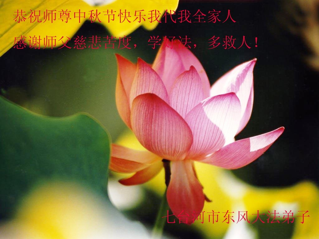 感谢师父的慈悲苦度!多学法,修好自己,争取做一个名副其实合格的弟子。 七台河北山大法弟子一家祝师父中秋节快乐!