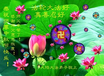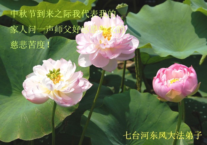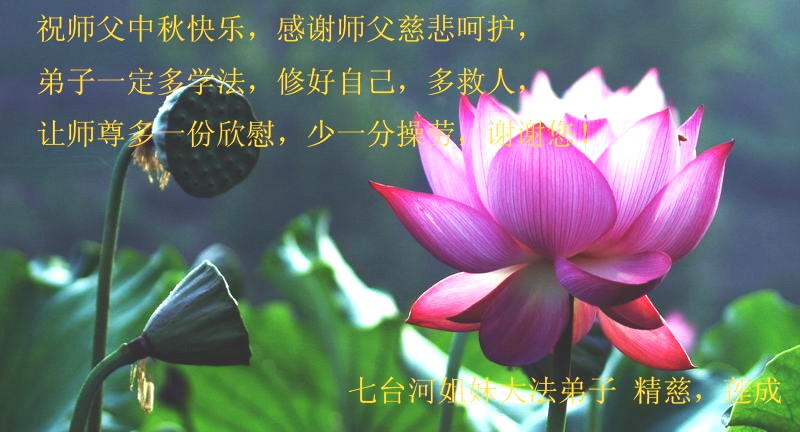 中秋节到来之际,我代我的家人问一声师父好!感谢恩师的慈悲苦度! 黑龙江省七台河姐妹大法弟子精慈、莲成祝师父中秋快乐!