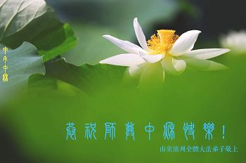 感谢师父的慈悲呵护!弟子一定多学法,修好自己,多救人,让师尊多一份欣慰,少一份操劳!谢谢您! 山东滨州全体大法弟子恭祝师尊中秋快乐!
