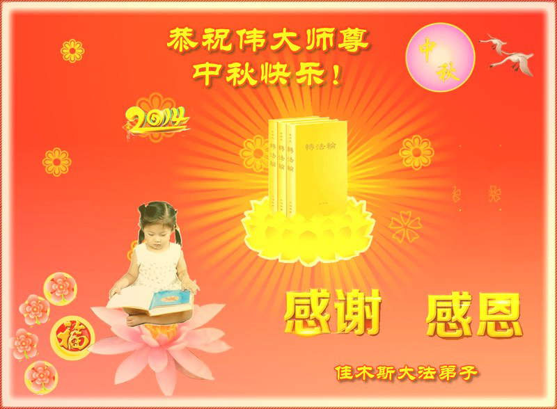 【明慧网二零一四年九月八日】 山东潍坊昌乐县大法弟子恭祝慈悲伟大师尊中秋快乐!