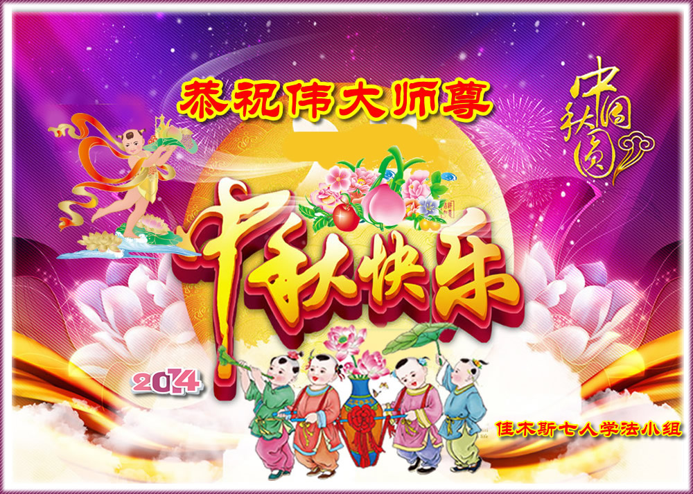 恭祝伟大师尊 中秋快乐 大法赐福多, 人神颂赞歌。 弟子向师贺, 中秋节快乐。 叩首感师恩, 拜谢大主佛。 大法修炼者, 三事认真做。 大法溶心中, 精進每时刻。 救人乐呵呵, 兑现史前诺。 正念坦荡行, 关关从容过。 开创新未来, 圆容永不破。 佳木斯大法弟子 2014 中秋 四川绵阳一学法小组全体大法弟子恭祝伟大师尊中秋快乐!