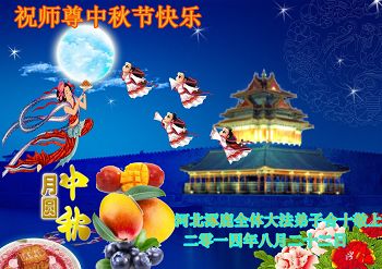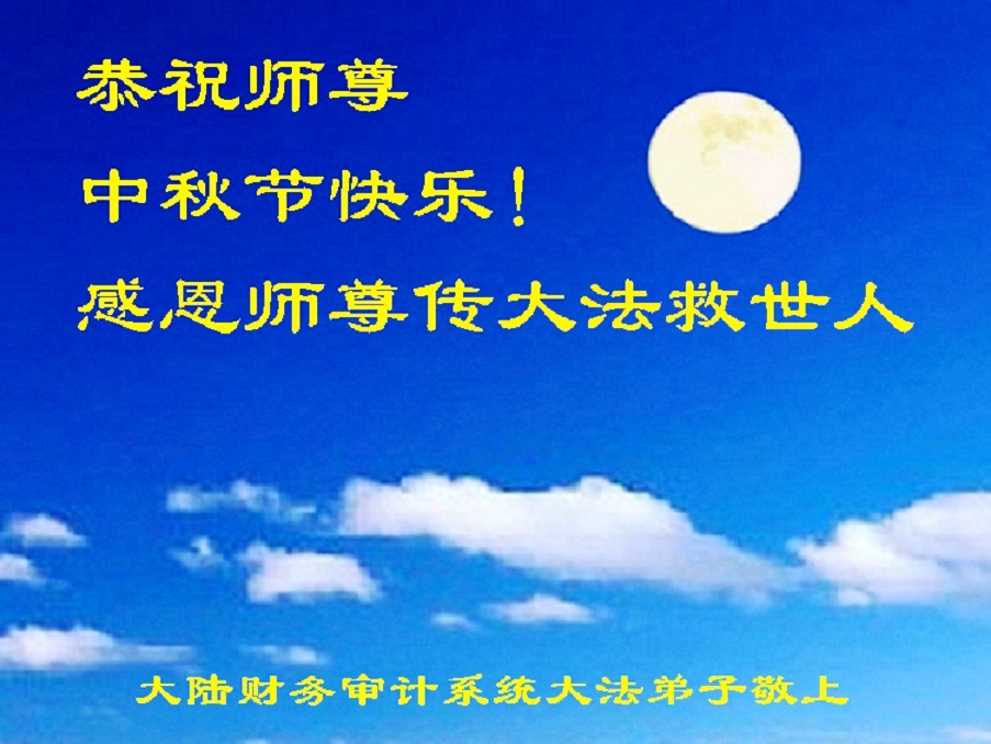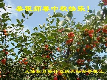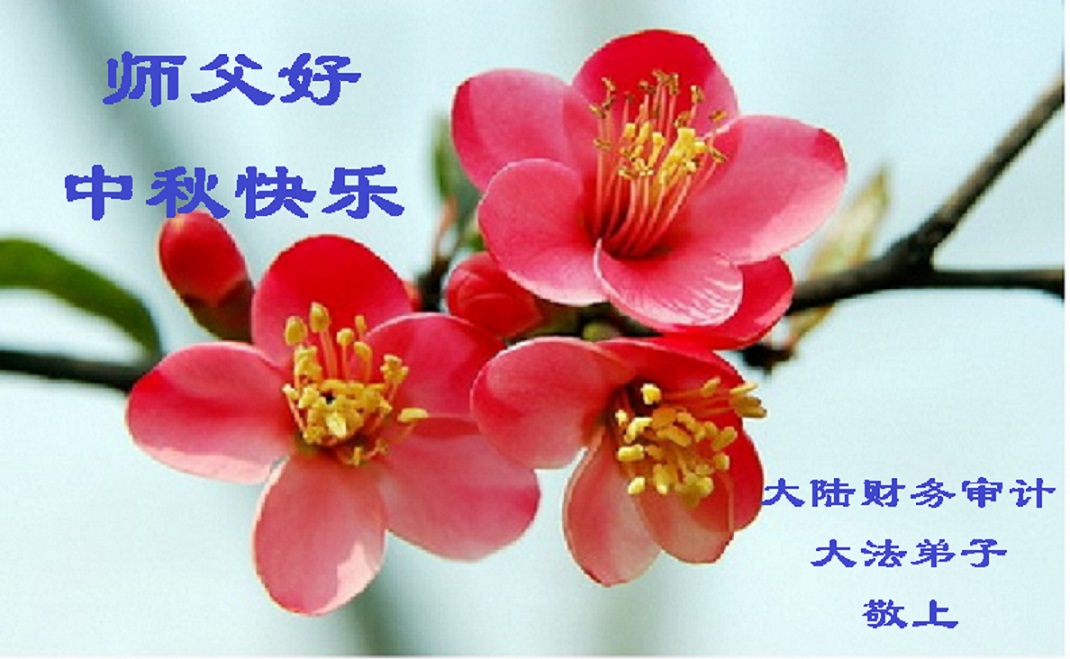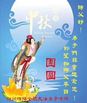 师父好!弟子们非常想念您!盼望和师父早日团圆! 四川绵阳全体大法弟子叩拜 大陆财务审计系统大法弟子恭祝慈悲伟大的师尊中秋快乐!