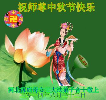 【明慧网二零一四年九月八日】 四川大法弟子恭祝师尊中秋节快乐!