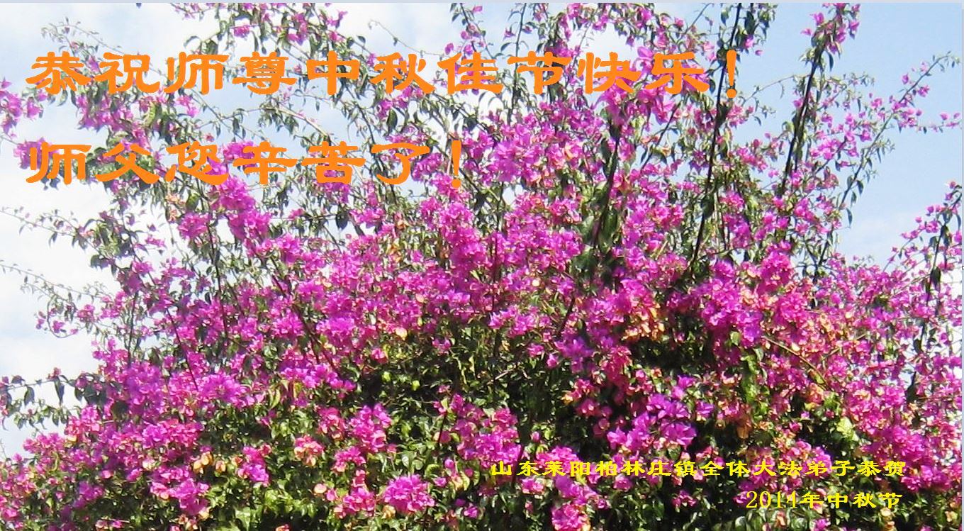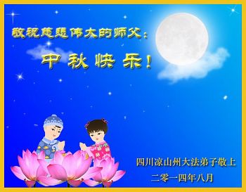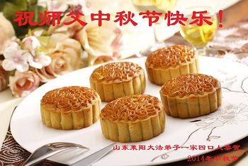 【明慧网二零一四年九月八日】 山东省枣庄市大法弟子恭贺师尊中秋快乐!