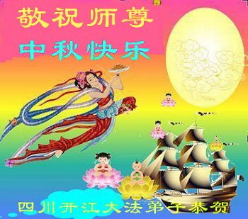 师尊慈悲救众生 大法已传全世界 众生得度感师恩 恭祝师尊中秋好 四川省攀枝花市全体大法弟子 二零一四年八月三十日 四川省绵阳一家三口大法弟子恭贺师尊中秋快乐!