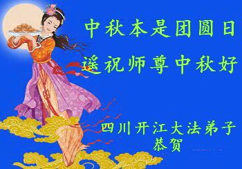 中秋佳节倍思亲 一年一度的中秋佳节马上来临了 在这佳节来临之际弟子更加思念师父 师父传法二十二年之多 为救大穹师父付出了自己的全部 师父所吃的苦遭的罪我们是无法想象的 作为我做得实在太差劲,是个不合格的弟子 内心深感愧疚对不起师父 但弟子对大法坚定的信念是坚如磐石的 对师父的赤诚之心是无法言表的 在此我衷心恭祝师父中秋节快乐!师父好! 中国大陆山东烟台市龙口市大法弟子 缘弟(化名) 二零一四年八月三十日 四川省攀西地区全体大法弟子恭祝慈悲伟大的师尊中秋节快乐!