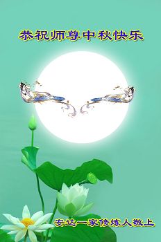 每逢佳节倍思亲!我们一定会谨记师尊的教诲,坚持集体学法,互相圆容,整体升华,救度更多众生,证实着大法,反迫害,我们会做好大法弟子应该做好的三件事。师尊您辛苦啦!弟子们跪拜师尊! 山东省威海市文登市大法弟子恭祝师父中秋节快乐!