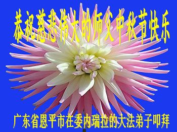 祝愿慈悲伟大的师父中秋节快乐!我会努力精進,不让师父操心。 2014-9-7 在韩国的大陆大法弟子恭祝师尊中秋快乐!