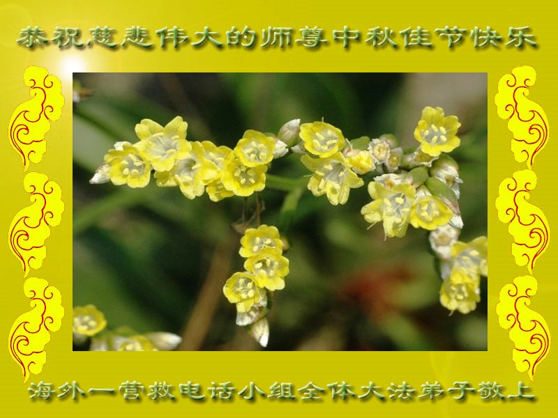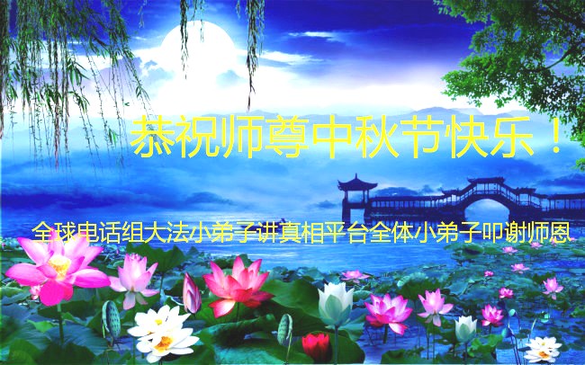 【明慧网二零一四年九月八日】 海外一营救电话小组全体大法弟子恭祝慈悲伟大的师尊中秋佳节快乐!感恩师尊的慈悲苦度!