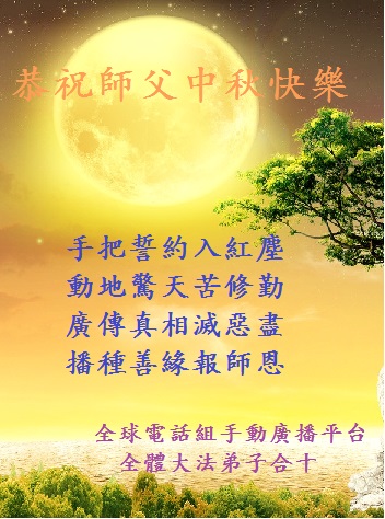 全球电话组手动广播平台全体大法弟子恭祝慈悲伟大的师父中秋快乐!