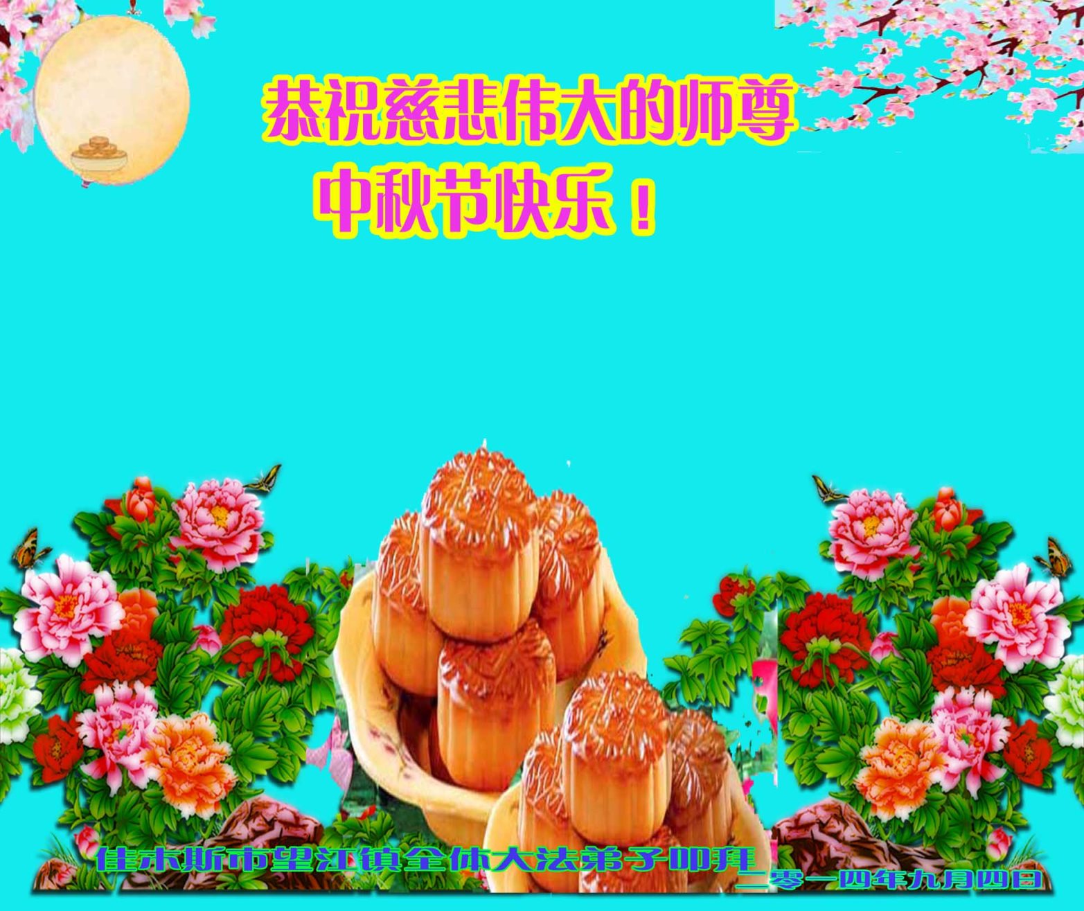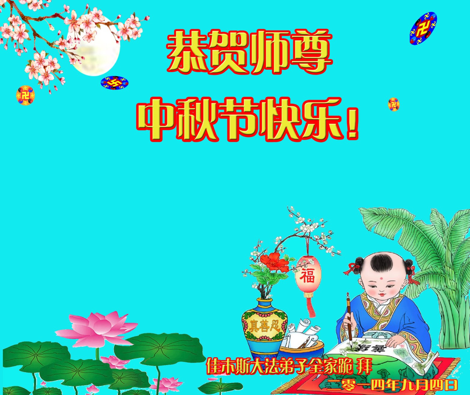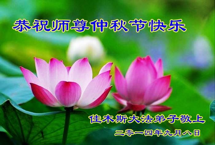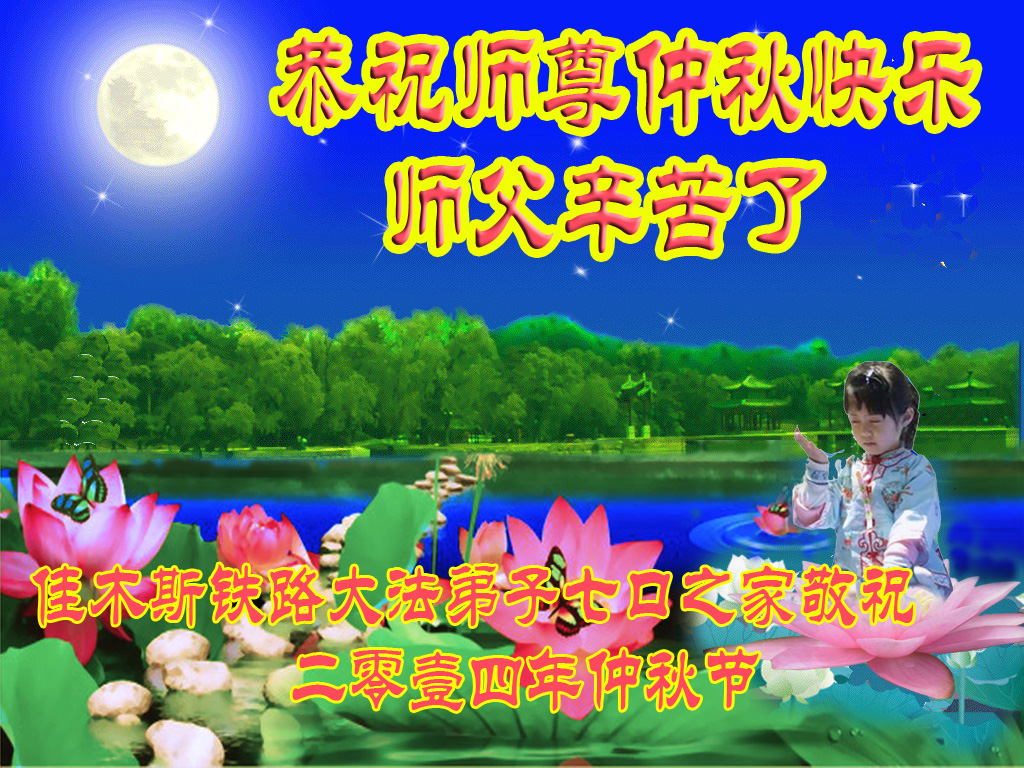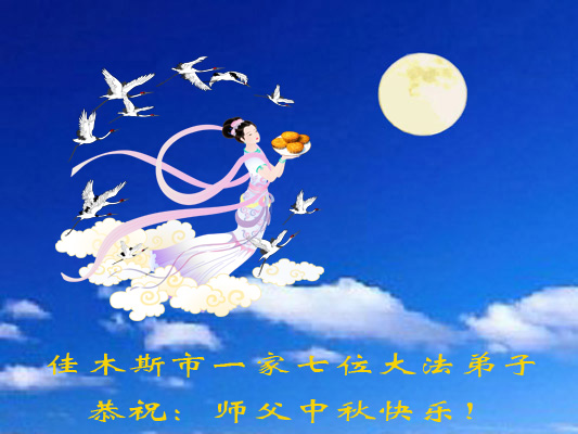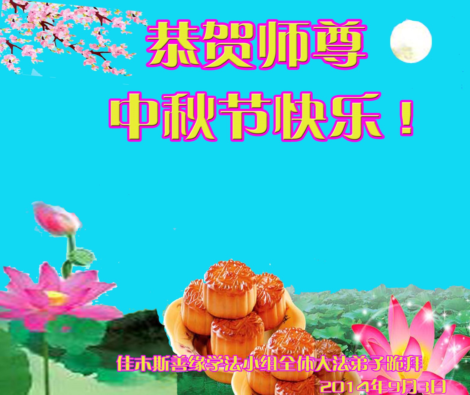 【明慧网二零一四年九月八日】 黑龙江省佳木斯一家七口大法弟子恭祝师父中秋快乐!