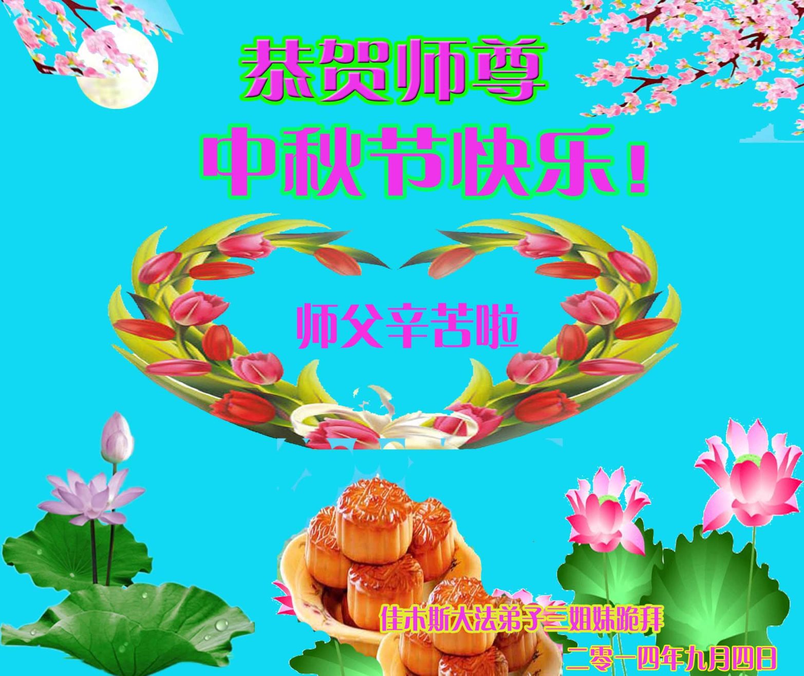 尊敬伟大的师尊您好! 中秋佳节来临之际,我们手机小组的全体大法弟子想念您啊!我们盼望您早日归来,我们把这种思念变成动力,努力做好三件事,完成我们的史前大愿,谢谢师尊的呵护。 恭祝慈悲伟大的师尊中秋节快乐! 佳木斯中片手机小组的全体大法弟子 合十! 二零一四年九月三日 黑龙江省佳木斯大法弟子恭祝师尊中秋节快乐!