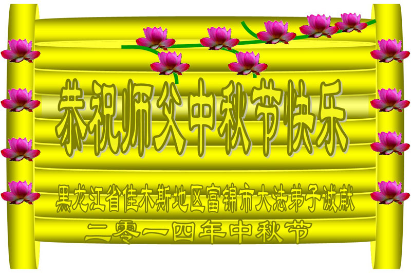 在师父的呵护下,努力做好三件事,多救众生,跟师父回家。 佳木斯一大法弟子 二零一四年九月三日 黑龙江省佳木斯青年组大法弟子恭祝师尊中秋节快乐!
