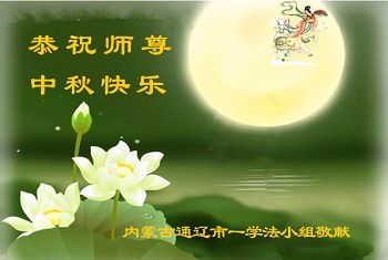 师父您好!师父您辛苦了! 每逢佳节倍思亲,八月十五—中秋节,是万家团聚的日子,弟子更加想念师父,几次想去美国,机缘都不成熟,也许是师父让我踏踏实实的好好修炼,所以,我没有气馁。我深信和师父团聚的日子不远了。我发正念时就想:让新!唐!人:电台、电视台取代遭殃电视台成为全球的主播,让神韵艺术团、神韵交响乐团来中国大陆演出,迎接师父凯旋!我觉得我的愿望很快就会实现。 全世界的大法弟子:让我们共同携起手来整体提高、整体升华,稳健的走好最后的路,功成圆满,随师把家还!谢谢师父慈悲苦度! 内蒙古自治区通辽市霍林郭勒市一学法小组大法弟子恭祝慈悲伟大的师尊中秋节快乐!