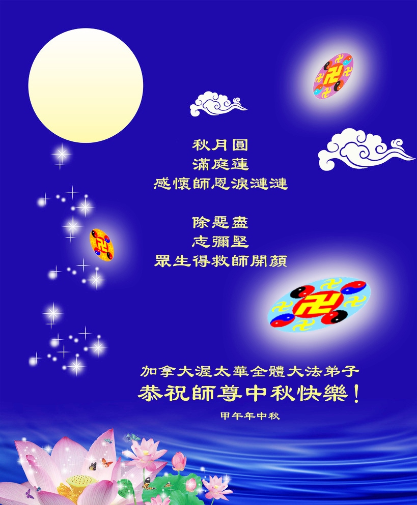 中秋佳节之际,渥太华全体大法弟子感谢师父慈悲救度之恩!