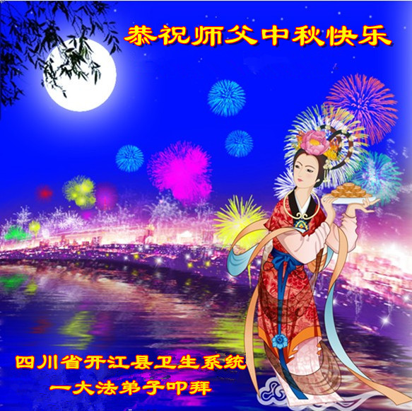 四川省达州市开江县卫生系统一大法弟子恭祝师尊中秋快乐!