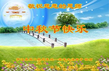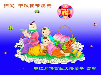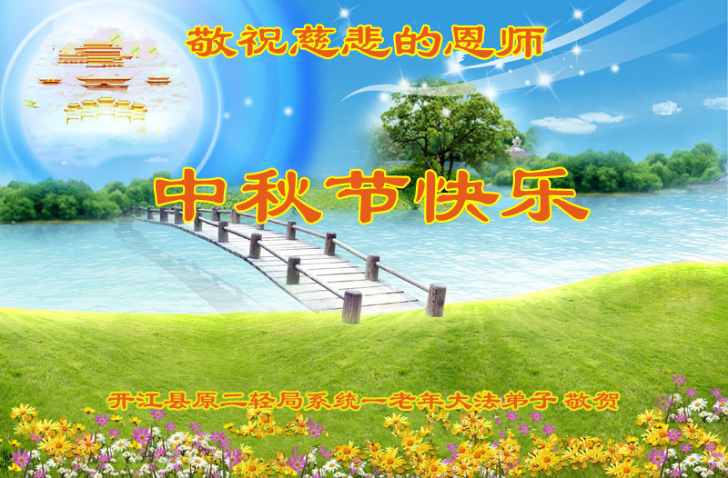 【明慧网二零一四年九月八日】 四川省达州市开江县原二轻局系统一老年大法弟子敬祝慈悲的恩师中秋节快乐!