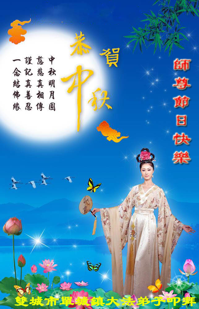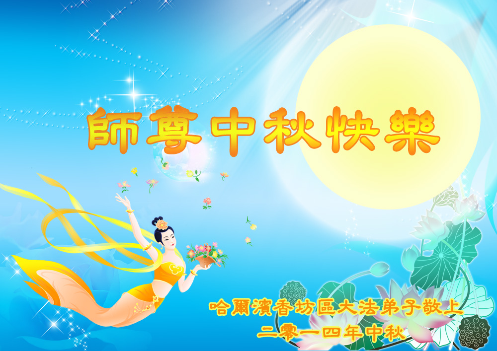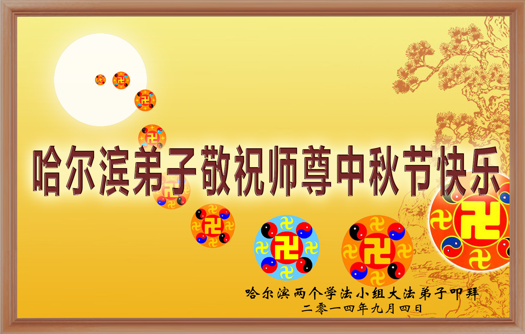 师尊您好:祝师尊中秋节快乐! 哈尔滨市道里区一学法小组全体大法弟子 2014.9.4 黑龙江省哈尔滨市双城市大法弟子恭祝师尊中秋节快乐!