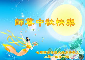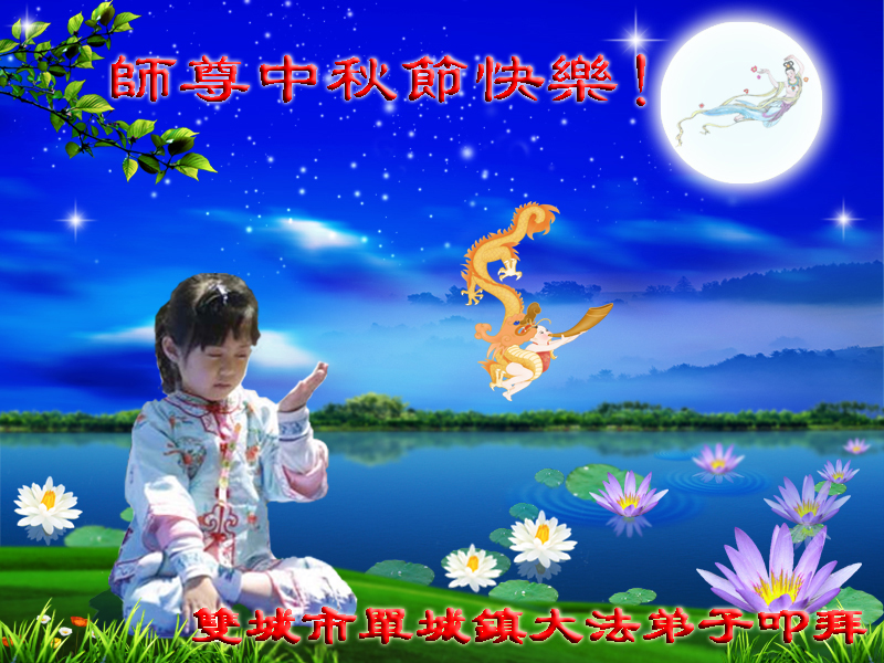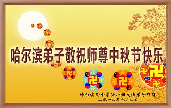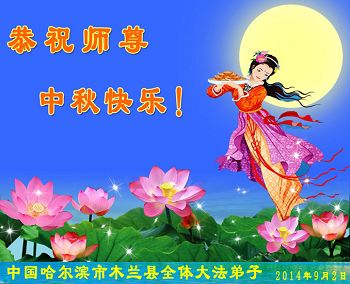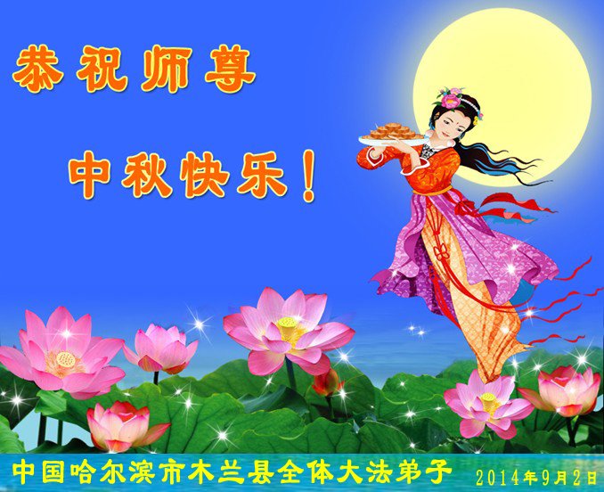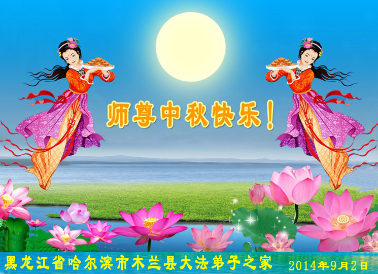 【明慧网二零一四年九月八日】 黑龙江省哈尔滨市木兰县大法弟子恭祝师尊中秋节快乐!